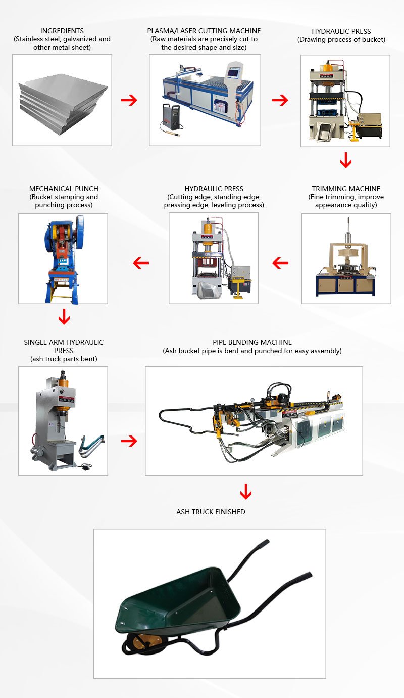 Shandong Zhongyou Heavy Industry has customized and manufactured a complete handcart production line for a Turkish client, capable of performing multiple processes including stretching, stamping, bending, flanging, straightening, and press fitting.