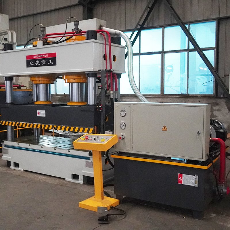 The 315-ton double-cylinder four-column hydraulic press is suitable for manufacturing metal shingles. During the forming process of metal shingles, the dual cylinders apply pressure to the metal sheet simultaneously, ensuring uniform force distribution across all areas of the shingle. This prevents material deformation or the detachment of colored stone particles that could result from pressure concentration caused by a single cylinder.