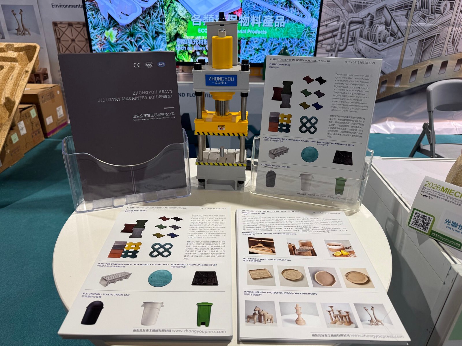 Zhongyou Heavy Industry presented a series of customized hydraulic presses tailored for composite materials and eco-friendly materials. These machines, known for their high precision and efficiency, have been widely applied in the production of hot-pressing molding equipment, playing a crucial role in the manufacturing of eco-friendly products.